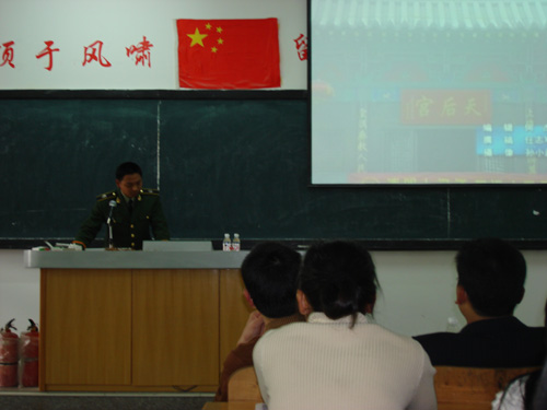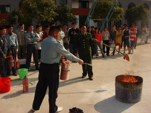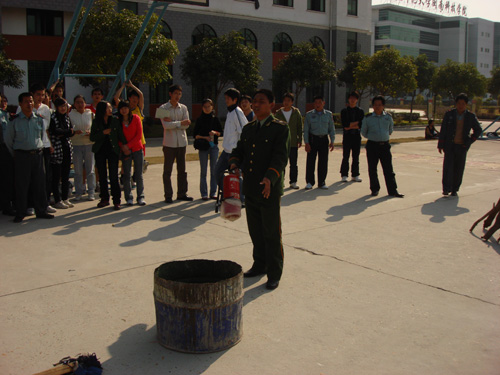 下午两点,培训教育准时在教学楼C201开始了。参加这次培训的人员有我院的部分教职工、在校保安及学生社区各幢楼的义务消防员,共一百多人。一开始张教官先以三个消防短片引入讲座内容,接着分三个部分介绍火灾的分类、特点和传播形式等知识,同时援引近几年火灾实例进行讲解,报告真实、生动、切实。最后,张教官详细的讲述了火灾时如何逃生求助及如何救火,并结合实际提出各种假设,讲座现场双方互动不断。在一片热烈的掌声中我们结束了在室内讲座部分的内容。随后,参加培训会的人员又集中到篮球场上来,张教官为我们做了精彩的消防示范表演,并指导学院保安及义务消防队员进行消防演练。