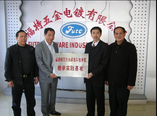 3月4日上午,我院副院长肖华山教授和教务部张永祥主任驱车前往石狮市福特五金有限公司参加教学实践基地的挂牌仪式。石狮市福特五金有限公司电镀厂是福建知名的电镀厂,该企业为富贵鸟、奥康等众多国内知名企业厂家的产品进行电镀加工。此次挂牌作为我校教学实践基地之一,不仅能够给我院生化工程系的学生提供教学实践场所,同时也促进我院与企业合作教学。
