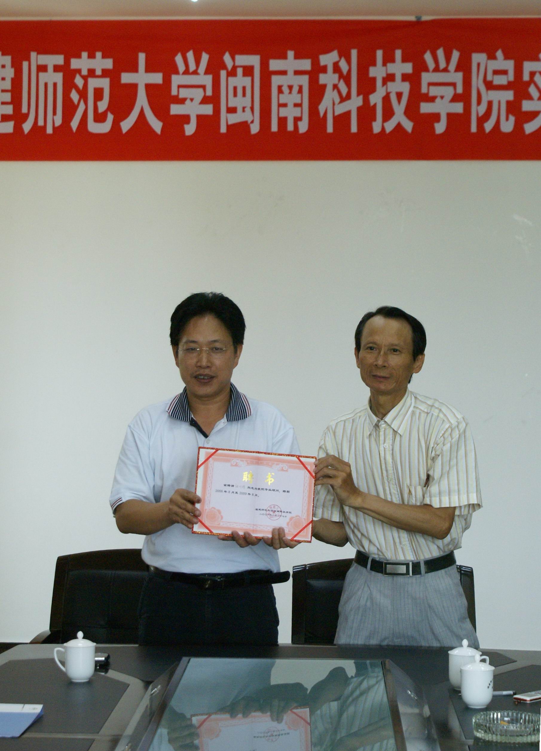 经友好协商,我院与中国美协惠安写生基地共建人文艺术实践教学基地,院长黄国盛教授与张川河总经理签订了协议。为进一步提高我院教育教学质量,加强人文艺术系相关专业建设,提高人文艺术系专业人才培养质量,更好地培养学生的实践能力、创新能力和创业能力,我院特聘张川河总经理为我院的专业顾问,并举行了授聘仪式,院长黄国盛教授亲自为受聘者颁发聘书和佩戴我校校徽。
