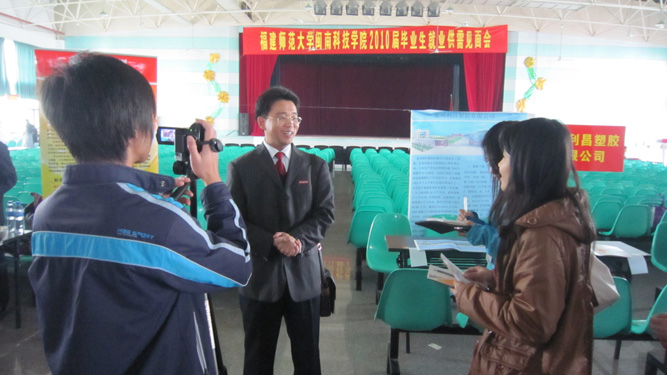 为更好地为毕业生提供就业服务,学院高度重视,精心组织了这场招聘会。由于2010届毕业生都在福建师大校本部就读,学院安排车辆为前来参加招聘会的同学接送并免费提供午餐。招聘会上,他们带着早已精心准备好的个人简历早早的就来到现场,我院学生都希望能第一个被面试,给招聘人员一个好的印象。学生记者在采访兴业银行时了解到,前来应聘的学生很有远见,素质也比较高。同时,宏发集团的负责人说道:“刚毕业的大学生往往是潜力大于能力,现在的公司需要的是人才,只有拥有了乐观自信的心态与实践能力,才有可能得到企业的青睐。”