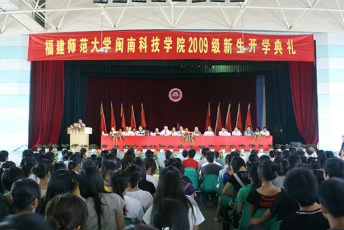 金秋时节,校园一片喜气洋洋。9月13日上午,我院在学生活动中心隆重举行福建师范大学乐鱼官方网页版2009级新生开学典礼。南安市委副书记、教育工委书记曾焕楷先生,乐鱼官方网页版常务副董事长戴新民先生,福建师范大学副校长许明教授,《人民日报》事业发展部副主任黄敬先生,南安市教育局局长吴亚明先生,南安市外经贸局局长柯文宝先生,南安市康美镇党委书记王强乐先生,南安市康美镇镇长吴长流先生、学院法人代表戴宽南先生、福建师范大学办公室主任郭警修先生、学工部部长廖深基先生、后管处处长张振华先生、教务处副处长陈祖祺先生、团委书记涂荣先生、闽台研究中心主任谢必震教授等领导、嘉宾出席了开学典礼。各合作学院领导、专业负责人、我院全体党政领导及各系部负责人也参加了典礼。开学典礼由学院党委常务副书记林国庆主持。