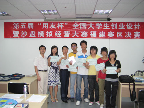 获奖团队名单为:陈维镖(07市场营销专业,担任CEO)、杨吻玉(07工商管理专业,担任CFO)、董美玲(07工商管理专业,担任CLO)、陈吉庆(07市场营销专业,担任CPO)、吴春容(07市场营销专业,担任CMO)。鸿科团队参加决赛的指导教师为乐鱼官方网页版管理学系陈晓川、杨海艳和张惠强老师,三位老师同时获得“用友杯”优秀指导教师称号。