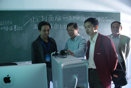 专家组检查数字媒体实验室