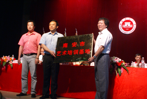 授牌仪式上,陈荣法市长代表南安市委、市政府向学院院长郭丹教授、法人代表戴宽南先生进行授牌,这标志着南安市艺术培训基地正式成立。授牌仪式之后,与会领导和嘉宾还观看了文艺演出。