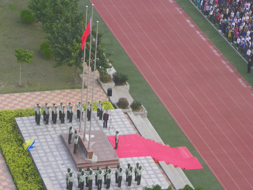 3月22日清晨,伴随着徐徐春风,在学院塑胶田径场隆重举行了的升国旗仪式。学院党政领导、全体教职员工以及全体在院学生4700多人参加了升挂国旗仪式。升旗仪式由院党委副书记陈振祯同志主持。