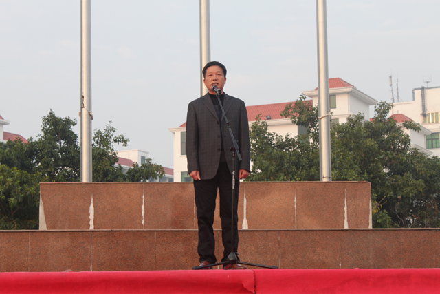 升旗礼毕后,学院党委常务副书记林国庆发表了讲话,他指出,升挂国旗仪式是学院全体师生接受爱国主义教育的重要渠道,是全体师生牢记历史、肩负使命的一次再学习、再教育。全校师生务必心系祖国,奋发图强,勤奋工作,努力学习。同时他针对本学期的主要工作,提出了以下几点要求:一、要牢牢抓住“十二五”规划开局之年,结合我院的教育教学工作,抓住机遇,稳步发展;二、今年是学院建校十周年,我们要全面回顾和总结办学十年的经验,紧紧抓住新学期面临的机遇和挑战,探索新的教学模式、努力做好迎接评估的各项准备工作,力争以优异的成绩顺利通过2012年教育部的评估;三、全体师生应当继续保持高昂的学习和工作热情,围绕学院中心工作,将教育教学工作推向新的台阶。并号召全院师生要深入学习实践“科学发展观”,继续深入开展创先争优活动,紧紧围绕学院的发展目标,齐心协力,奋发向上,以优异的工作成绩推进学院的新一轮发展。