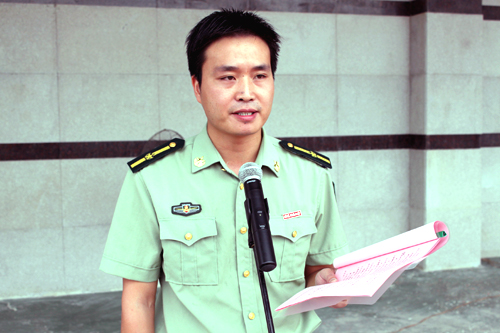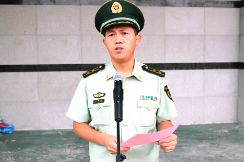 中国人民武装警察部队泉州支队叶新腾副参谋长做军训动员讲话,他表示军训是一种特殊的教育形式,也是同时们步入新学期必修的一课。为了共同完成好这次军训,他向参加军训的同学们提了四点建议和希望:一、端正思想,认识认真对待军训;二、树立吃苦意识,大力发扬革命军人吃苦耐劳精神;三、强化服从意识、自觉做到服从命令,听从指挥;四、配合教官工作,认真学习,积极思考。