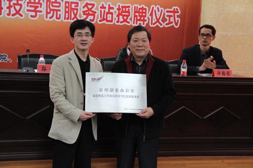 授牌仪式上,郭院长发表了热情洋溢的致辞。他说,YBC福师大乐鱼官方网页版服务站的成立,标志着中国青年创业国际计划成功落户我院,这是我院学生就业创业工作的重要里程碑。我们将以此为契机,认真学习YBC的先进理念,借助YBC的网络、智力和人才优势,凝聚和调动全院各方力量,积极帮助学生创业,大力推动大学生就业再上新台阶。