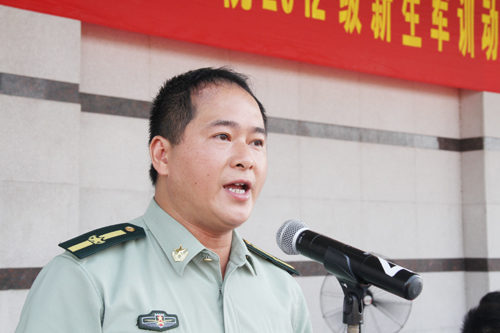 期间,新生军训团教官代表菅斌、学院军训总教官苏清山、学生代表刘文军分别做了发言。