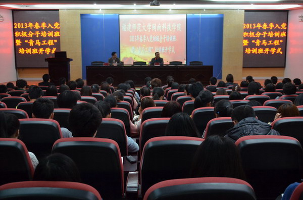 开学式在庄严的国歌声中拉开帷幕。林明旭在开学式上代表学院党委、党校对培训班开班表示祝贺。他说,学员们参加入党积极分子培训和“青马工程”培训,不仅是一次难得的学习机会,也是大学政治生活的一件大事,更是在人生道路迈出的重要一步。他向全体学员们提出了三点希望:一要加强学习,努力提升自身的思想政治素质;二要端正入党动机,树立正确的世界观、人生观和价值观;三是要遵守纪律,切实提高培训的实效性。