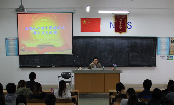 李彬源以历史事件为点、以增强党性为本,从“社会主义革命建设时期”、“改革开放现代化建设时期”两个方面引入,将历史事件与两个历史时期史实发展有机结合,阐释了“社会主义革命建设时期和改革开放建设时期”两者的辩证关系。通过讲座,使同学们对新中国建设的两个历史时期有了更深刻的认识、更透彻的理解、更准确的把握,对广大党员特别是年轻学生党员具有重大的教育意义。