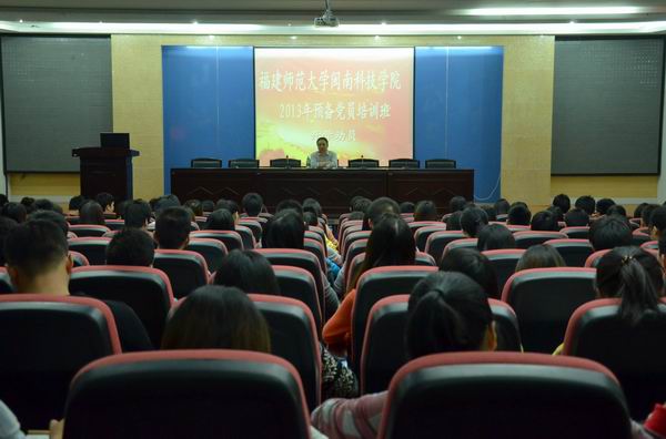 11月16日上午,我院党委分党校在图书馆学术报告厅举行2013年学生预备党员培训班开学式暨学习贯彻党的十八届三中全会精神大会。院党委常务副书记林明旭,党委工作部部长陈碰仔及培训班全体学员109人出席了开学式。开学式由陈碰仔主持。