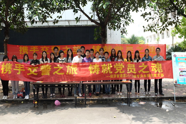 为认真贯彻落实第七个福建省学校安全教育周主题教育活动的有关精神,有效增强广大师生的校园交通安全意识,创建平安和谐校园。4月9日下午,武装保卫部、经济管理系2013级专升本学生党支部联合开展交通安全教育系列活动。
