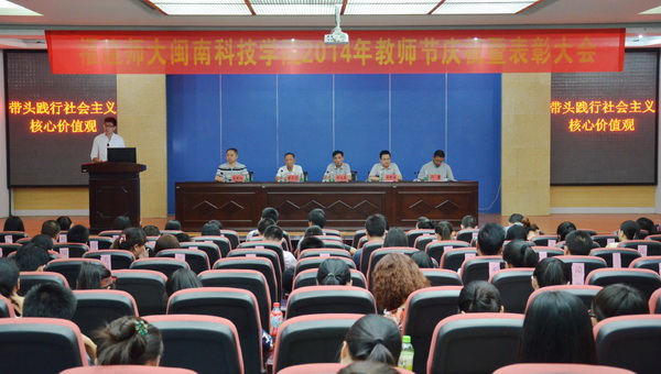 9月10日下午,我院在图书馆学术报告厅隆重举行2014年教师节庆祝暨表彰大会。学院名誉院长陈兰荪,院领导邱永渠、林明旭、李彬源、吴勇,受表彰的先进集体和先进个人,以及部分师生代表300余人参加本次大会。大会由党委常务副书记林明旭主持。