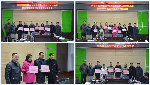 1月4日上午,我院在图书馆评建办会议室召开2014年毕业生就业工作总结表彰暨2015年毕业生就业工作动员大会。大会总结了2014年毕业生就业工作,表彰2014年毕业生就业工作先进个人和就业贡献奖,并对2015年毕业生就业工作提出目标和任务。院领导邱永渠、林明旭、李彬源、吴勇,院毕业生就业工作领导小组成员,以及各系部主任、辅导员和教师代表参加了大会。大会由招生就业部主任张燕斌主持。