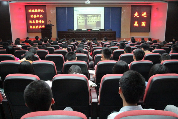 11月30日,福建师范大学团委书记陈志勇在图书馆学术报告厅为师生们带来“走进美国”主题讲座。讲座由院团委书记庄天怀主持,近300名师生参加讲座。