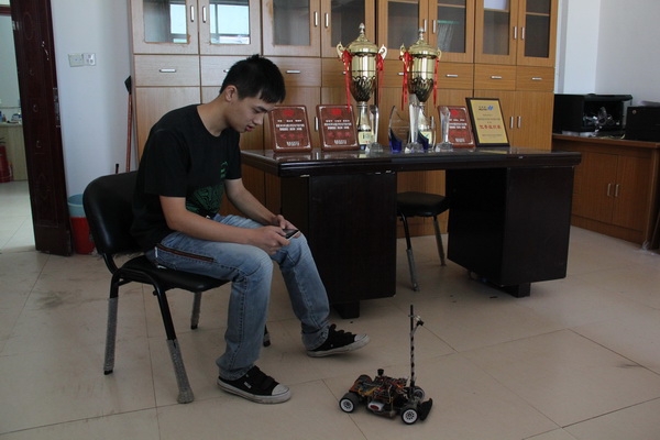 据了解,本次展览会共有22件设计作品参展,作品来自于创新实验室2012级、2013级光电系电子信息工程专业的同学们,作品包括 “旋转LED”、“3D8”、“四轴飞行器”、“蓝牙漂移赛车”“智能家居”等同学们最新学习成果。如展品“旋转LED”设计新颖,效果炫酷引来众多同学们的围观;“蓝牙漂移赛车“则有摄像的功能,一部手机就可以完全控制它的方向,好奇的同学们也参与其中。展会上的作品无一不凝聚了电子创新实验室师生们的智慧与汗水,展现了我院大学生独到的创新能力与聪明才智。