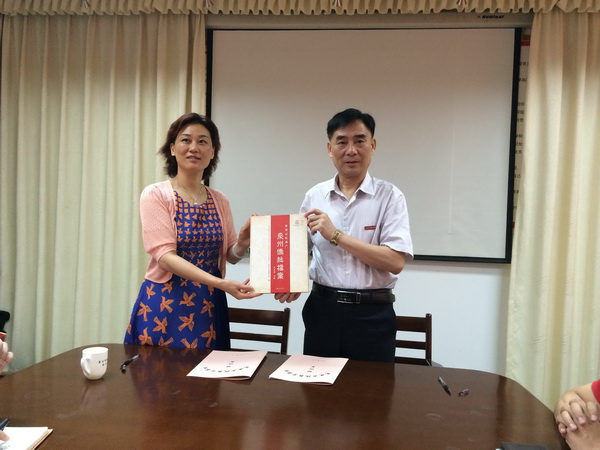 夏丽清局长代表泉州市档案局向我院图书馆赠送《泉州侨批档案》等书籍,她表示将进一步加强与我院合作,努力把实践教学基地建设好,让更多地闽科学子通过这个平台学习到更多地闽南侨乡文化。