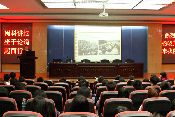 4月8日,“闽科讲坛”邀请福州大学教务处处长、博士生导师杨晓翔教授,在图书馆学术报告厅为我院学生作了关于“如何度过你的大学生活”专题讲座。讲座由院长邱永渠教授主持。