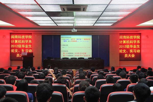 11月8日晚,计算机科学系举行2016届毕业论文暨毕业实习动员大会,毕业实习指导老师以及毕业班学生400余人参加了动员大会。大会由系副主任禹谢华副教授主持。