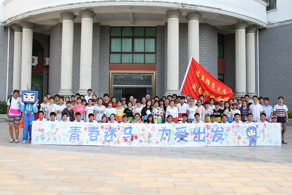 活动开始前,“闽小科”通过发传单、标语等形式对马拉松安全知识进行普及。随着发令枪响,同学们有序地开启5公里迷你马拉松公益跑。在终点处,同学们在写有“青春迷马,为爱出发”的画卷上,手蘸颜料完成五彩手印长卷,现场还通过微博、游戏进行互动。
