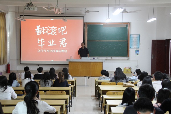 10月14日下午,立丹行机构泉州分公司在我院举办校园招聘宣讲会,标志我院2016届毕业生校园招聘工作全面启动。学院百余名2016届毕业生参加了宣讲会。