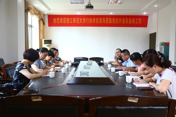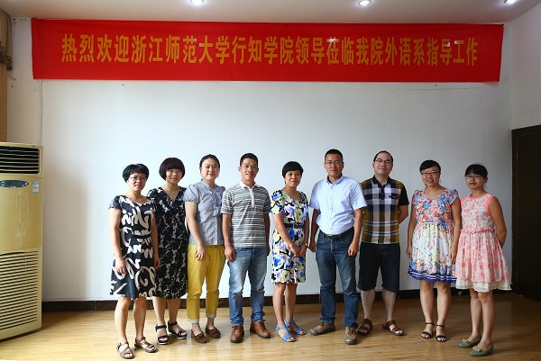 9月7日上午,浙江师范大学行知学院外语系主任贾玲华一行5人到我院考察交流,受到副院长周勇军热情接待。