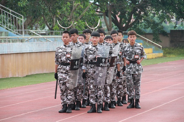 5月20日,学院武装保卫部举办第八届学生纠察队比武大赛,大赛进行了会操表演、队列表演、消防演练、防暴演练等环节比拼,来自康美、美林两校区的纠察队员们着装整齐、精神抖擞、训练有素,分别演示了警棍术、匕首操、格斗术,动作简洁有力,虎虎生威,充分展示了自身素质和防暴技能。