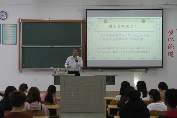 11月9日,“闽科讲坛”邀请台湾康宁大学休闲管理学系(所)主任张耀川副教授,作题为“博弈赢得精彩人生”的讲座。讲座由学院教务部副主任刘标老师主持。