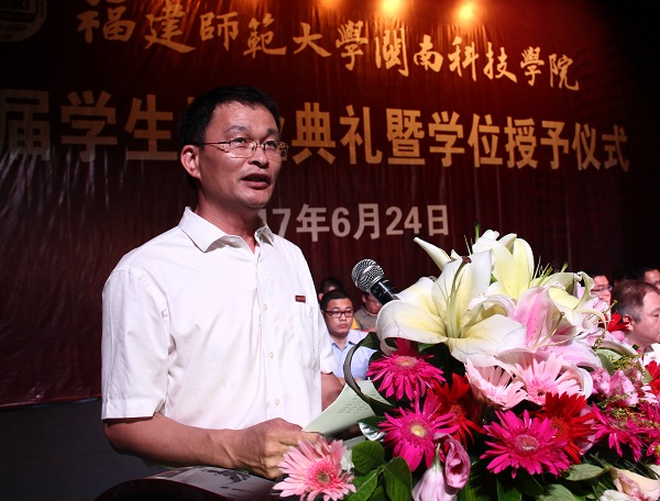 教师代表孙文缘老师、毕业生代表2013级英语专业陈欣萌同学、毕业生家长代表林斌同志、校友代表2003级信息管理与信息系统专业温翰林先后上台发言。