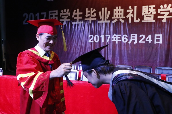 随后,邱永渠院长亲自为每一位毕业生颁发学士学位证书,执行“拨穗礼”,并逐一合影留念。2017届毕业生挥别母校,扬帆起航,开启人生新征程。