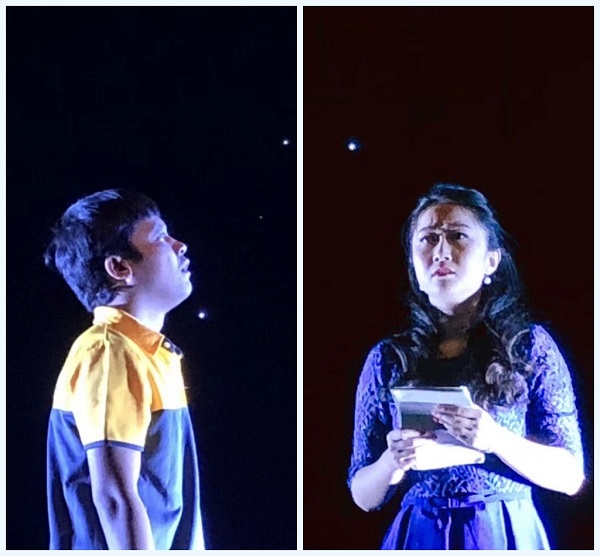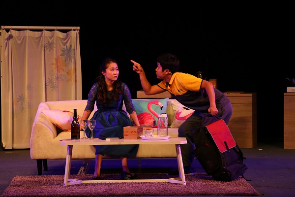 话剧《花事如期》讲述的是女主人公海伦在一夜之间的人生故事。海伦某夜在自己寓所内精心打扮,等待男友前来求婚,等来的却是快递来的“拜拜”与账单。在伤心绝望,想要自杀之时,海伦被快递员青子绊住。两人一夜的情感交流,给双方带来了生活、爱情观念的升华。舞台上,两位演员你来我往,用饱含情绪的语言与到位的肢体动作向现场观众们展示了这“一夜”间的情感转折与剧情的跌宕起伏。演员们用精湛的表演、形象的艺术刻画和高雅的艺术气息为我院师生带来了一个难忘的视觉盛宴。