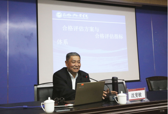 11月16日,我院邀请福州外语外贸学院校长沈斐敏教授莅临我院,作《合格评估方案与合格评估指标体系》专题讲座,院领导张杰、俞建群、周勇军、吴勇及全院教职工到场聆听。讲座由学院党委副书记、副院长(主持工作)张杰主持。