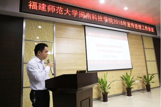 11月16日上午,学院召开全院宣传思想工作会议,贯彻落实全国全省宣传思想工作会议精神,以及福建师范大学宣传思想工作会议精神,全面总结一年来学院宣传思想工作,研究部署新形势下进一步加强和改进学院的宣传思想工作。学院党委副书记、主持工作副院长张杰,学院党委副书记、纪委书记俞建群,学院党委委员、副院长周勇军,全体中层干部及各单位信息员共60余人参加会议。会议由俞建群主持。