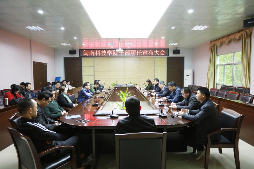 3月14日上午,我院在图书馆评建办召开干部聘任宣布大会。院领导张杰、俞建群、周勇军、吴勇,全体中层干部参加大会。会议由党工部部长陈碰仔主持。