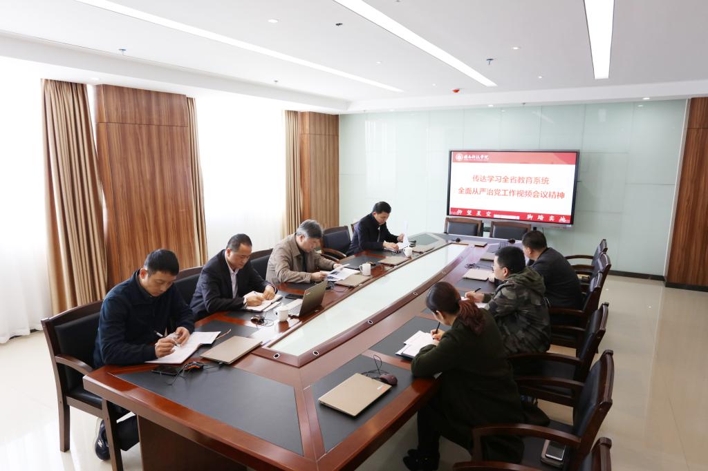 3月11日上午,学院召开党委会,传达学习全省教育系统全面从严治党工作视频会议精神。学院领导张杰、周勇军、吴勇,各二级学院党总支负责人和相关职能部门负责人参加会议。