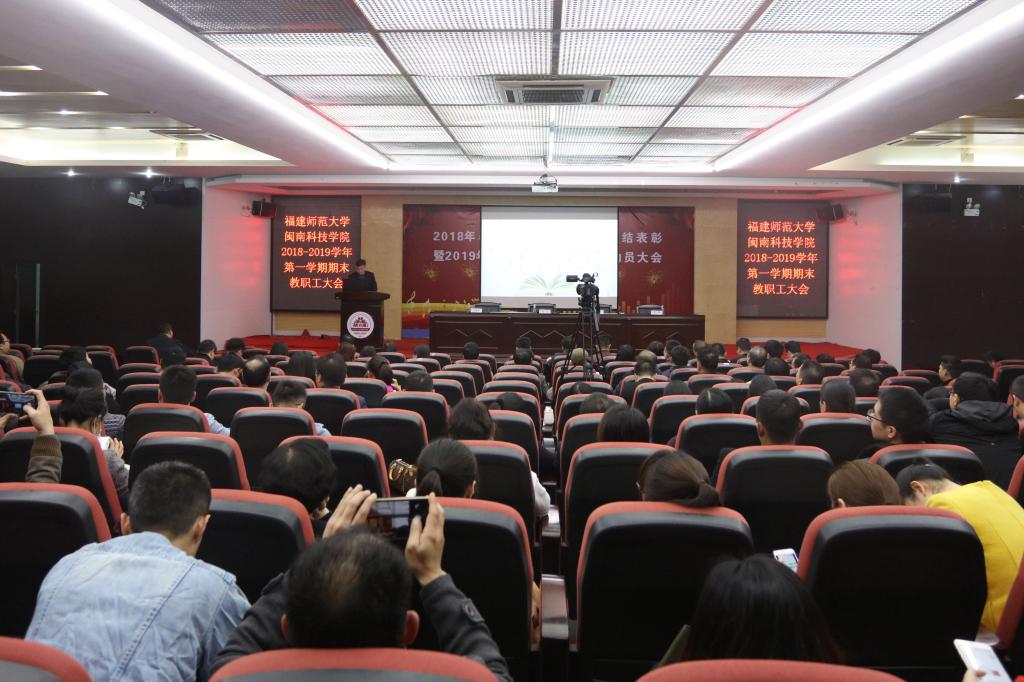 会上,学院党委副书记、副院长(主持工作)张杰作《筑牢 强化 聚焦 扎实推进新闽科应用型发展》工作报告。报告围绕“四个‘筑牢’,创新加强新时代党建思政”“四个‘聚焦’,扎实推进应用型人才培养”“四个‘强化’,努力打造高质量教工队伍”等主题,总结本学期学院党建工作、思政课程教学、意识形态工作、校园文化建设等工作成效,解读学院发展规划、改革创新、产教融合、服务地方能力、教师队伍建设等实际举措。他表示,本学期学院深入学习贯彻习近平新时代中国特色社会主义思想和党的十九大精神,深入学习贯彻全国全省高校思想政治工作会议、全国教育大会精神,在福建师范大学党委和董事会的领导下,团结和依靠全院师生,紧紧抓住转设为独立设置的民办普通本科高校的机遇,聚力攻坚,跨越前行,较好地完成了2018年初和本学期初确定的目标任务,2018年11月,教育部正式发函,同意福建师范大学乐鱼官方网页版顺利转设为乐鱼官方网页版,学院在创建具有侨乡特色、在海峡两岸具有一定影响的高水平应用型民办本科高校的伟大征程中阔步迈进。