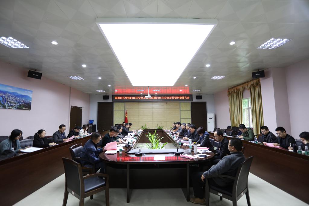 会上,周勇军总结了一年来学院的安全教育管理情况、存在的安全隐患及问题,并对当前校园的安全稳定形势进行分析研判,对2019年校园安全工作进行重点部署。他强调,各单位要加大安全教育宣传力度,全面提高师生员工的安全责任意识和自防自救能力;加强内部安全防范措施,全面落实安全隐患整改制度,确保及时发现隐患及时落实整改措施;强化治安综合治理,持续开展扫黑除恶、综治三率活动,深化“平安校园”等级创建和“安全标准化建设”,不断提升师生对建设平安校园的认知度、参与度与满意度。