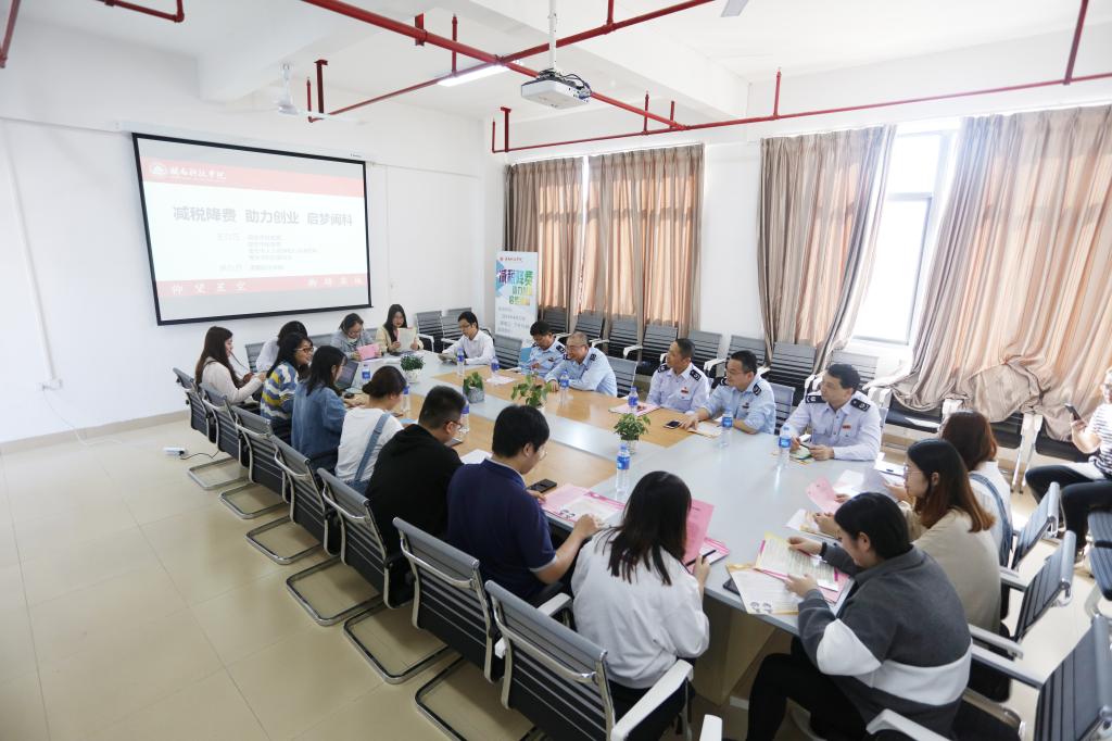 “减税降费政策的享受主体包括哪些?优惠内容有哪些?”“高校毕业生就业创业具体政策有哪些,有没有年限要求?”4月17日下午,南安市财政局、税务局、人力资源和社会保障局、妇女联合会及相关金融单位联合走进我校,开展“减税降费 助力创业 启梦闽科”系列宣讲活动,为大学生送上就业创业优惠政策红利。