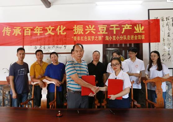 “淘小豆”小分队分别与金淘镇豆制品产业协会和谢建立盐露豆干坊签订合作协议