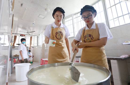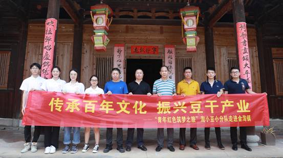 挑选优质大豆、泡豆、磨豆、过滤、煮浆、点卤、切块、包块……一块块豆干在“金淘盐露豆干”第五代技艺传承人陈燕琼的手下整齐码放。陈燕琼是我院第五届“互联网+”大学生创新创业大赛“青年红色筑梦之旅”活动“淘小豆”小分队队员之一,2018级广告学专业学生。7月15日,“淘小豆”小分队一行7人来到南安市金淘镇,与金淘镇政府、金淘镇豆制品产业协会开展豆干项目合作对接,并走访当地豆干作坊,推动地方传统产业改造升级。