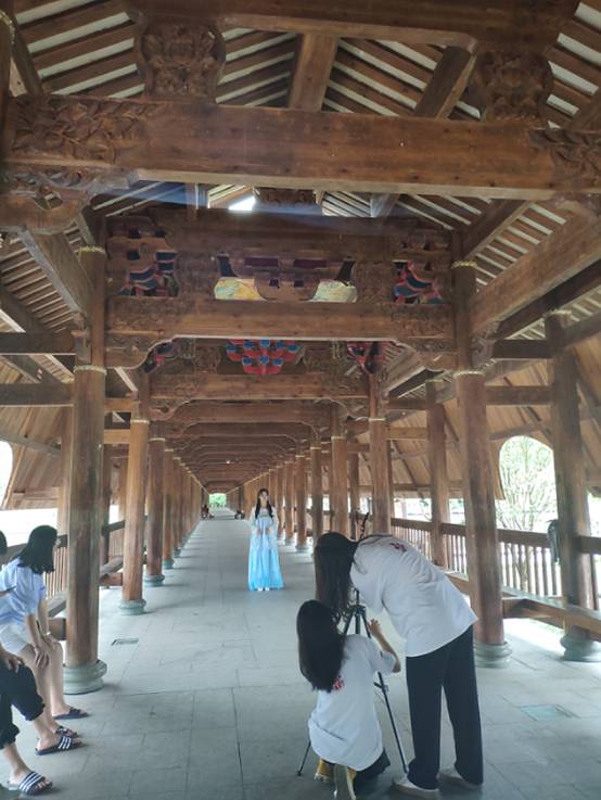 文昌桥、文昌阁、登云桥……在元坑镇,随处可见古水井、古祠堂、古牌匾、古桥、古庙宇等,它们融古朴、典雅、富丽、秀巧于一身。实践队员们身着汉服,手拿绣花团扇,撑起油纸伞,走在洋溢着浓郁的传统文化气息的元坑古镇,通过“抖音”拍摄了一段段古色古香的古镇风光,借助新媒体技术平台推广元坑古镇旅游文化产业。