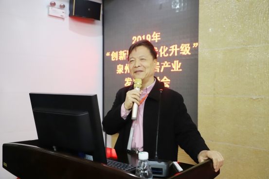陈明森教授结合“泛家居产业面临机会与挑战”“推动企业数字化改造,发展个性化定制”“完善O2O电商模式,大力发展平台经济”“政府、企业联手合作,打造南安泛家居区域品牌”等内容展开阐述。