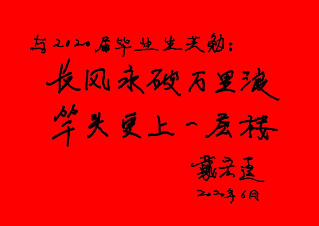 副校长、董事长助理戴景星为2020届毕业生寄语题词