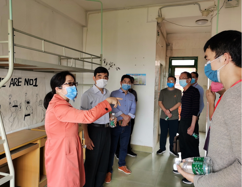 检查指导组一行实地查看了美林校区隔离场所的设置情况、卫生消毒设施、医学观察点及防控物资储备情况,详细了解疫情防控值班值守、环境消杀、开学疫情防控应急演练等工作进展,对我校有力有序落实各项防控措施给予了充分肯定。