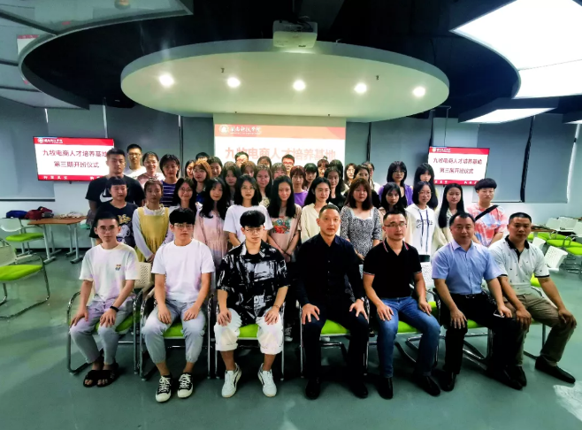 10月5日,闽科九牧电商人才培养基地第三期开班仪式在大学生创业园四楼路演厅举行。九牧集团电商主管陈长海,副校长吴勇,商学院、教务处等相关负责人及全体学员出席了开班仪式。