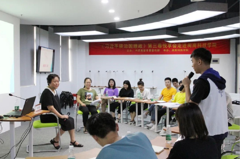 宣讲会上,朱林果副教授从“《习近平谈治国理政》第三卷出版与学习的意义”“认真学习《习近平谈治国理政》第三卷的丰富内容”“学用结合,指导实践,推动工作”3个方面深入阐述习近平总书记治国理政思想内涵,并与师生交流分享,气氛十分热烈。