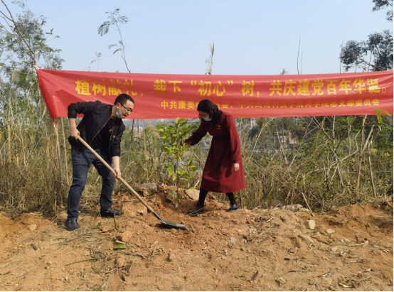 今年3月12日是我国第43个植树节。我校商学院党总支与康美镇党委联合开展“植树献礼,栽下‘初心树’,共庆建党百年华诞”主题党日活动,前往校地合作单位兰田村栽树绿化。