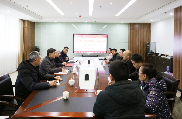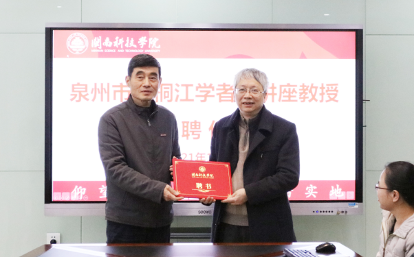 1月7日下午,我校敦聘“桐江学者”黄科安教授为讲座教授,校领导游小波、李旭、吴勇出席敦聘仪式,人事处、教务处、科研处、组织部、人文学院党政负责人参加敦聘仪式。吴勇副校长主持敦聘仪式。