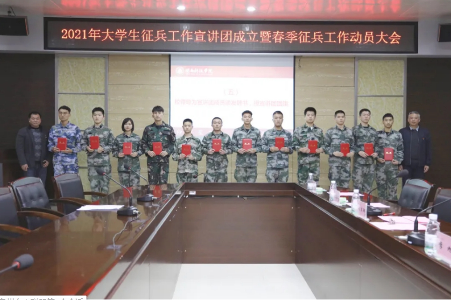 校党委书记李旭指出,征集大学生参军入伍是党中央、国务院着眼于国防和军队现代化建设需要而作出的一项重大战略决策,各单位一定要认真贯彻落实上级要求,扎实做好我校2021年征兵工作任务。他强调,一要高站位,各单位要从深入学习习近平新时代中国特色社会主义思想和十九届五中全会精神,全面贯彻习近平强军思想和新时代军事战略方针,助力推进政治建军、改革强军、科技强军、人才强军、依法治军,支持国防和军队建设的政治高度,结合毕业生就业工作推动征兵工作,积极选送优秀学生参军入伍。二要广泛宣传。各单位要充分发挥思想政治工作队伍、大学生征兵工作宣讲团的主动性、创造性,努力把广泛宣传和精准动员相结合,把网上宣传和会议宣传相结合,把政策宣传和典型引领相结合,扎实做好征兵宣传工作,高标准高质量完成2021年大学生征兵工作任务。三要优服务。各单位要增强服务意识、完善工作机制,发挥好工作的协同效应,在报名、审考、体检、定兵等环节积极配合地方做好工作,在学籍保留、资助金发放、学费补偿、退役复学等方面认真落实政策,努力做好“全方位”“全过程”“全天候”的“三全服务”,让每位学生“入伍安心,服役暖心,退伍放心”。